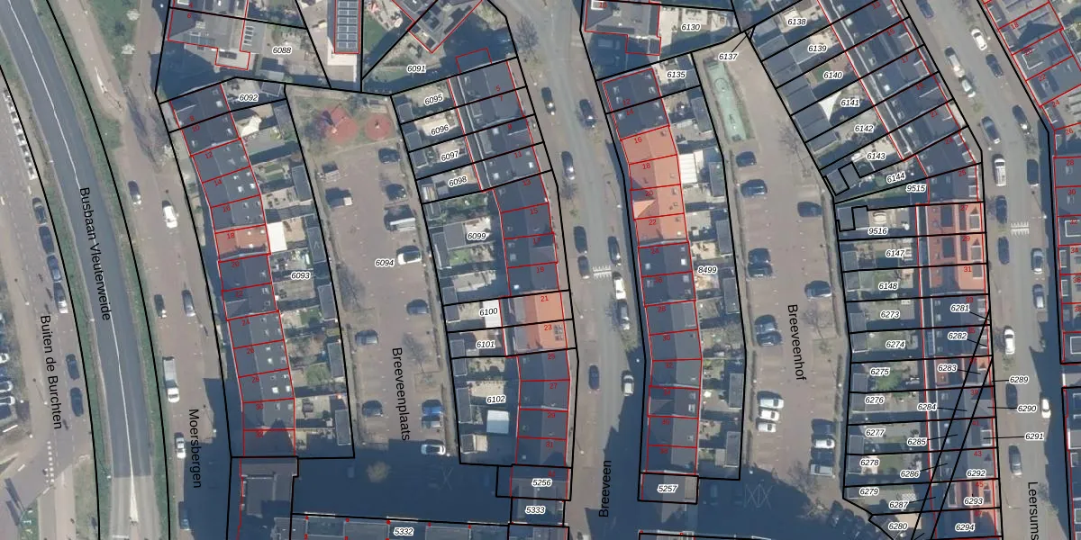 Het perceel waarop Breeveen 19 staat heeft een oppervlakte van 504 m². Dit is een groot perceel. De perceeloppervlakte wordt geregistreerd door het Kadaster. Gedetailleerde informatie over de maten van dit perceel kunt u vinden in het rapport Kadastrale kaart met maatvoering van Breeveen 19.