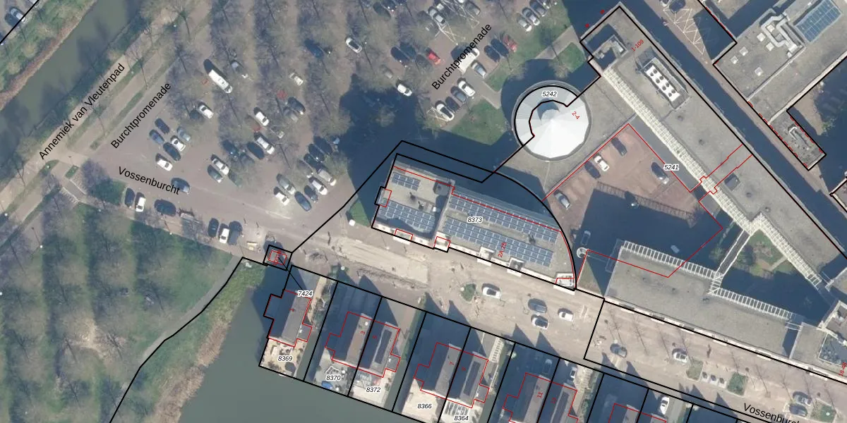 Het perceel waarop Burchtpromenade 14 staat heeft een oppervlakte van 835 m². Dit is een groot perceel. De perceeloppervlakte wordt geregistreerd door het Kadaster. Gedetailleerde informatie over de maten van dit perceel kunt u vinden in het rapport Kadastrale kaart met maatvoering van Burchtpromenade 14.