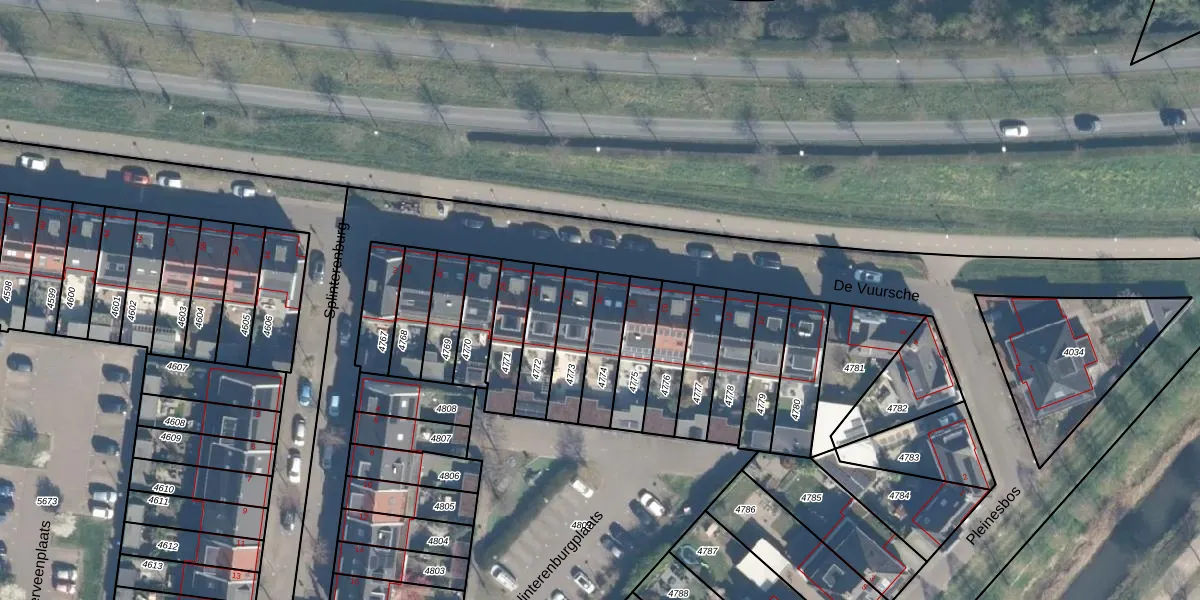 Gebruik de zoekbalk of klik op een perceel voor informatie over de adressen binnen dit perceel.