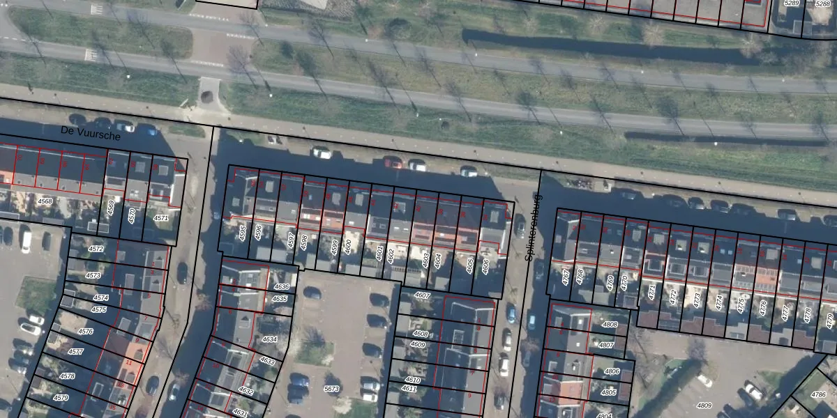 Het perceel waarop het adres ligt is VTN00-E-4603. De afkorting 'VTN00' staat voor kadastrale gemeente Vleuten. Het perceel is kleiner dan gemiddeld in Vleuten. Het perceel is 127 m² groot, terwijl het gemiddelde ligt op 1412,07 m². Het kleinste perceel in de kadastrale gemeente is 0 m² groot. De grootste perceeloppervlakte is 55,6 ha. Er zijn geen andere adressen aanwezig op het perceel. De laatste wijziging in het de Basisregistratie Kadaster (BRK) was op 20-11-2007.