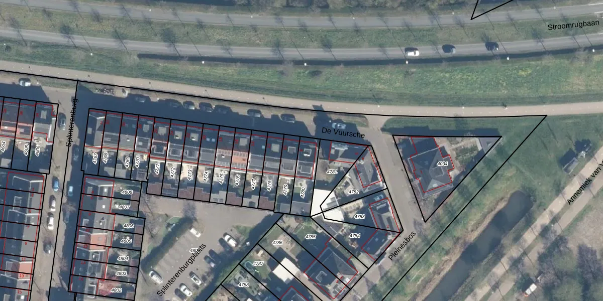 Gebruik de zoekbalk of klik op een perceel voor informatie over de adressen binnen dit perceel.