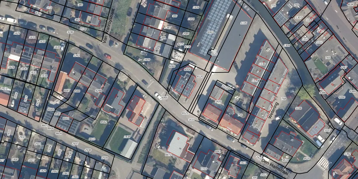 Gebruik de zoekbalk of klik op een perceel voor informatie over de adressen binnen dit perceel.