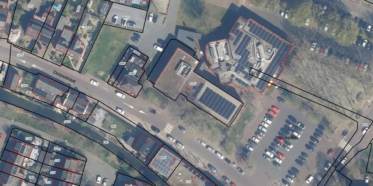 Het perceel waarop Dorpsplein 3-A staat heeft een oppervlakte van 990 m². Dit is een groot perceel. De perceeloppervlakte wordt geregistreerd door het Kadaster. Gedetailleerde informatie over de maten van dit perceel kunt u vinden in het rapport Kadastrale kaart met maatvoering van Dorpsplein 3-A.
