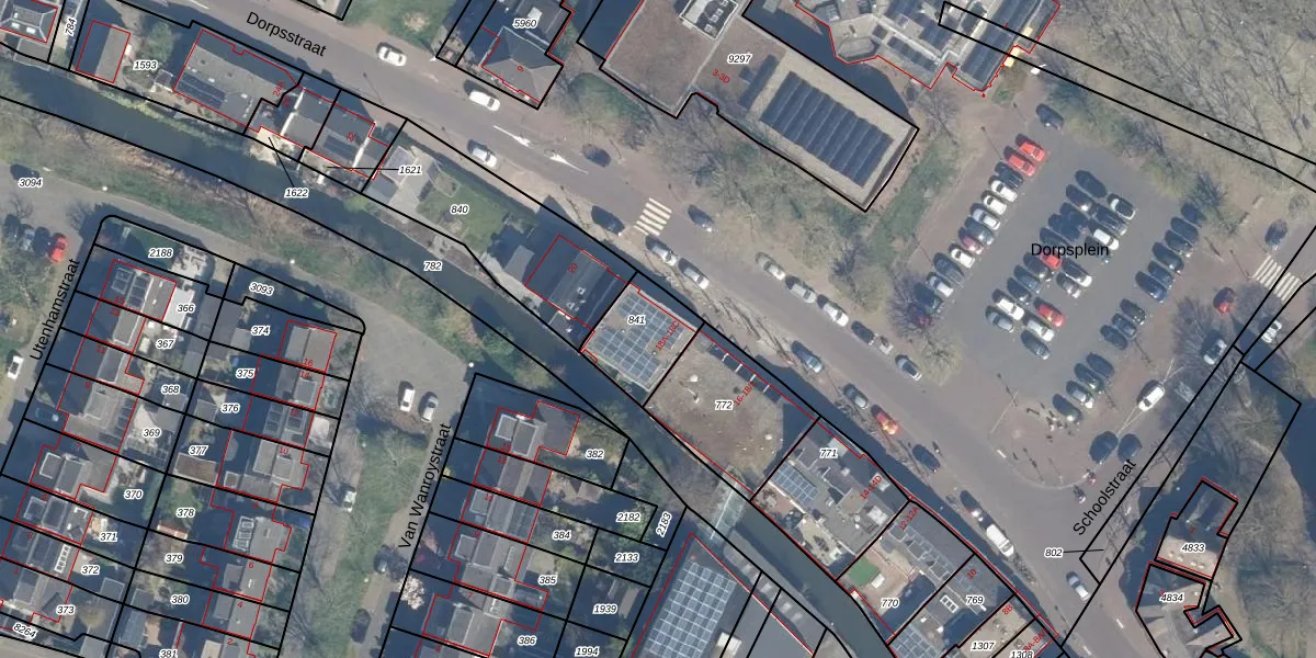 Het adres is gelegen op perceel 841 in de sectie E en de kadastrale gemeente Vleuten. De kadastrale aanduiding is aldus VTN00-E-841. De gemiddelde perceelgrootte in Vleuten is 1408,13 m². Dit perceel is kleiner: de perceeloppervlakte bedraagt 203 m². De grootste perceeloppervlakte in de kadastrale gemeente is 55,6 ha. De kleinste oppervlakte bedraagt 0 m². Op het perceel zijn 3 adressen aanwezig. In de Basisregistratie Kadaster (BRK) werden de grenzen van het perceel geregistreerd op 11-12-2009.