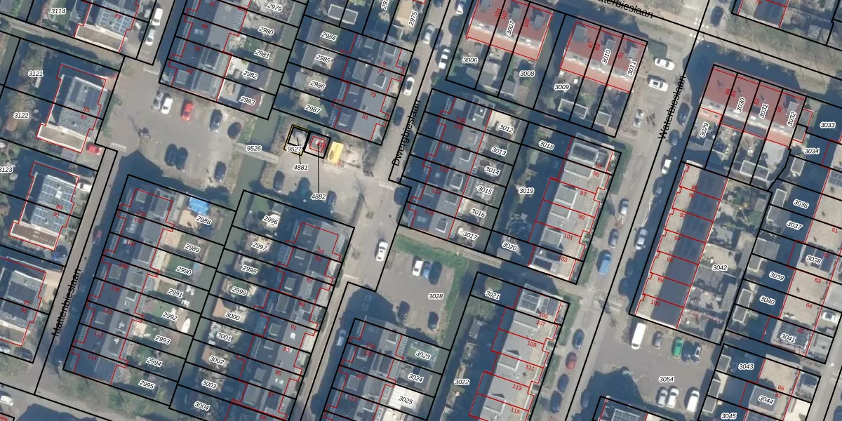Gebruik de zoekbalk of klik op een perceel voor informatie over de adressen binnen dit perceel.