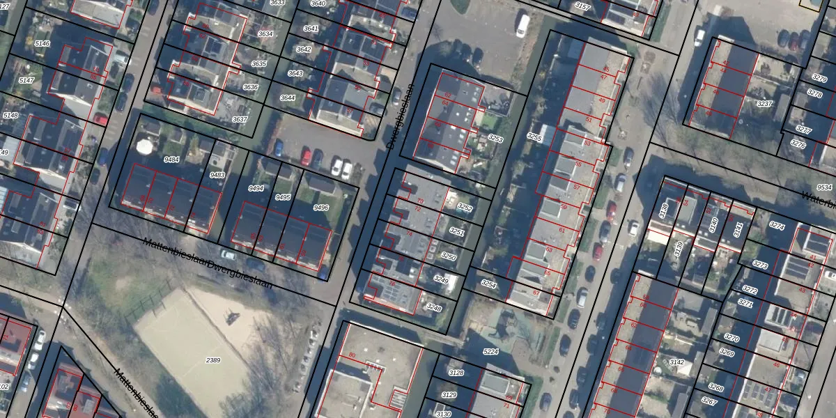 Gebruik de zoekbalk of klik op een perceel voor informatie over de adressen binnen dit perceel.
