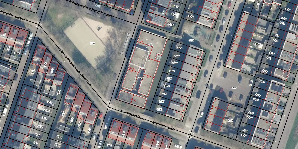 Het perceel waarop Dwergbieslaan 84 staat heeft een oppervlakte van 1202 m². Dit is een zeer groot perceel. De perceeloppervlakte wordt geregistreerd door het Kadaster. Gedetailleerde informatie over de maten van dit perceel kunt u vinden in het rapport Kadastrale kaart met maatvoering van Dwergbieslaan 84.