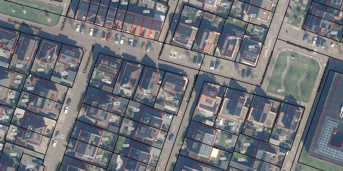 Gebruik de zoekbalk of klik op een perceel voor informatie over de adressen binnen dit perceel.