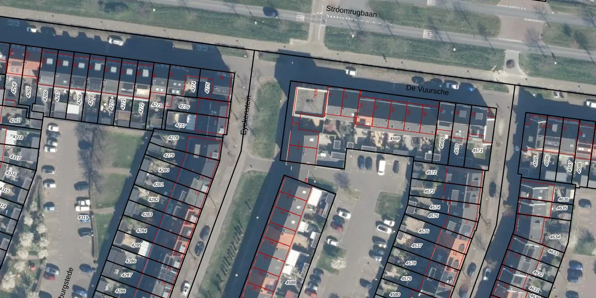 Het perceel waarop het adres ligt is VTN00-E-4568. De afkorting 'VTN00' staat voor kadastrale gemeente Vleuten. De gemiddelde perceelgrootte in Vleuten is 1411,43 m². Dit perceel is kleiner: de perceeloppervlakte bedraagt 1166 m². Het grootste perceel in de kadastrale gemeente is 55,6 ha. Het kleinste perceel heeft een oppervlakte van 0 m². Op het perceel zijn 12 adressen aanwezig. In de Basisregistratie Kadaster (BRK) werden de grenzen van het perceel geregistreerd op 31-08-2009.