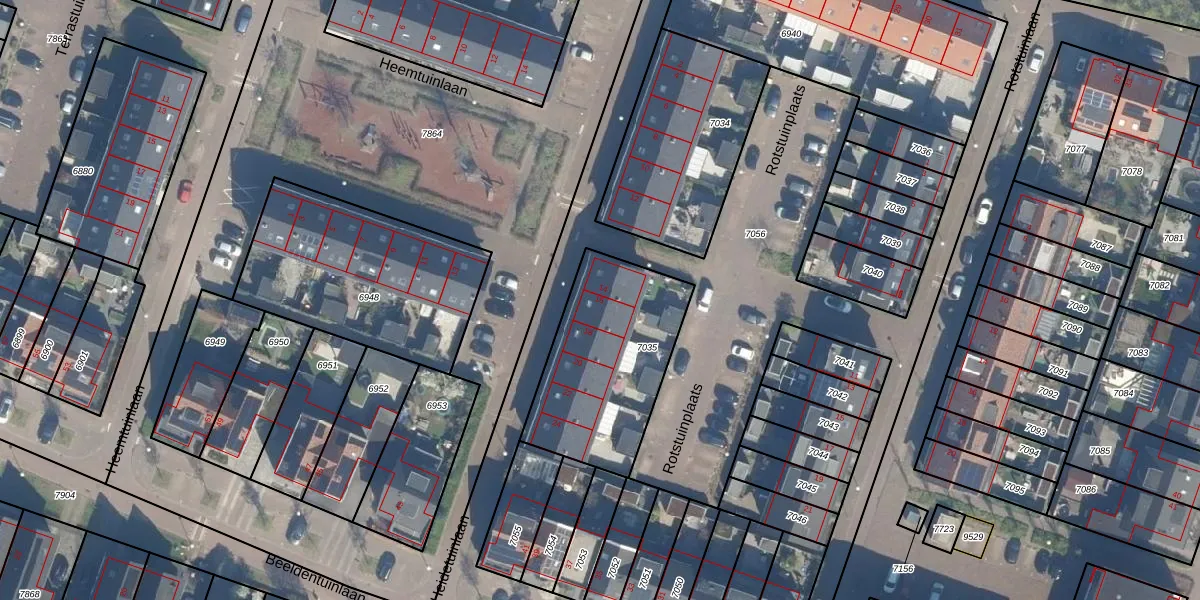 Heidetuinlaan 16 is gelegen op kadastraal perceel VTN00E7035. Deze kadastrale aanduiding is uniek en wordt gebruikt door het Kadaster om eigendomsrechten en andere zakelijke rechten vast te leggen. Het perceel maakt onderdeel uit van de kadastrale gemeente Vleuten.