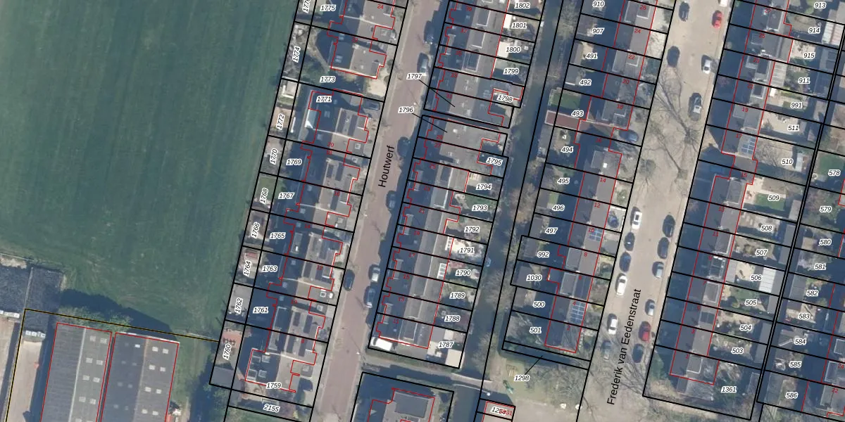 Het perceel waarop Houtwerf 21 staat heeft een oppervlakte van 118 m². Dit is een middelgroot perceel. De perceeloppervlakte wordt geregistreerd door het Kadaster. Gedetailleerde informatie over de maten van dit perceel kunt u vinden in het rapport Kadastrale kaart met maatvoering van Houtwerf 21.