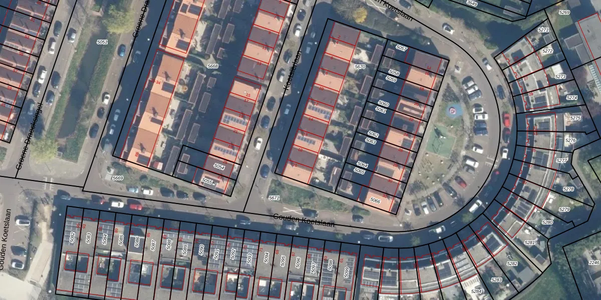 Het perceel waarop Koetsierlaan 18 staat heeft een oppervlakte van 1148 m². Dit is een zeer groot perceel. De perceeloppervlakte wordt geregistreerd door het Kadaster. Gedetailleerde informatie over de maten van dit perceel kunt u vinden in het rapport Kadastrale kaart met maatvoering van Koetsierlaan 18.