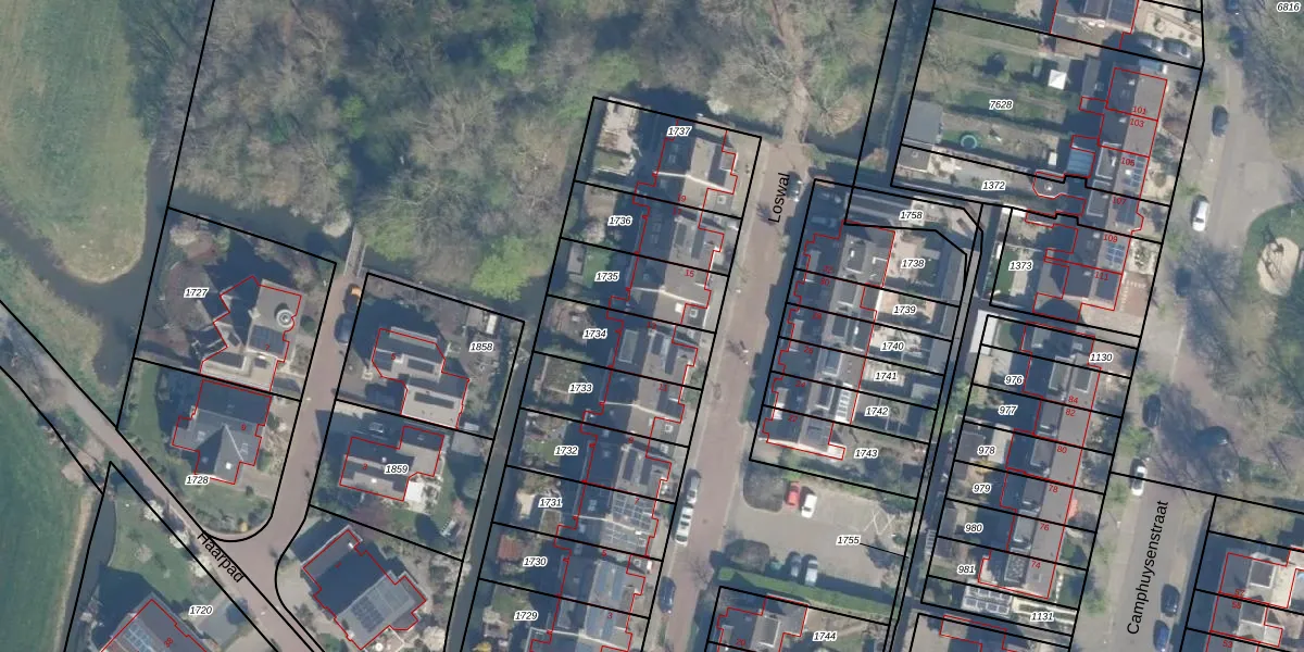 Het perceel waarop Loswal 13 staat heeft een oppervlakte van 240 m². Dit is een middelgroot perceel. De perceeloppervlakte wordt geregistreerd door het Kadaster. Gedetailleerde informatie over de maten van dit perceel kunt u vinden in het rapport Kadastrale kaart met maatvoering van Loswal 13.