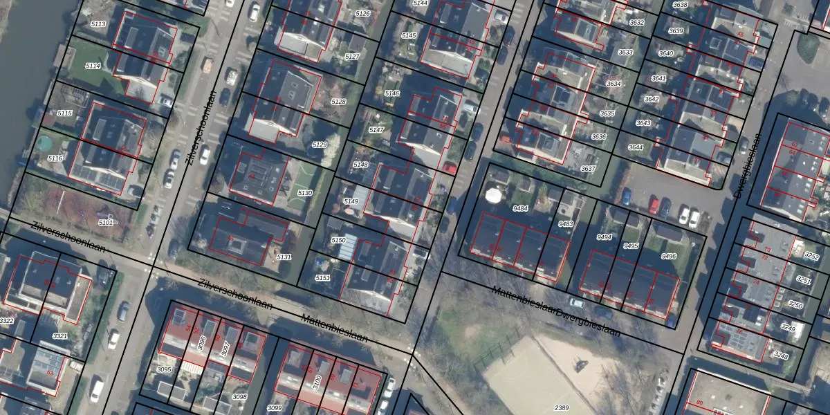 Gebruik de zoekbalk of klik op een perceel voor informatie over de adressen binnen dit perceel.