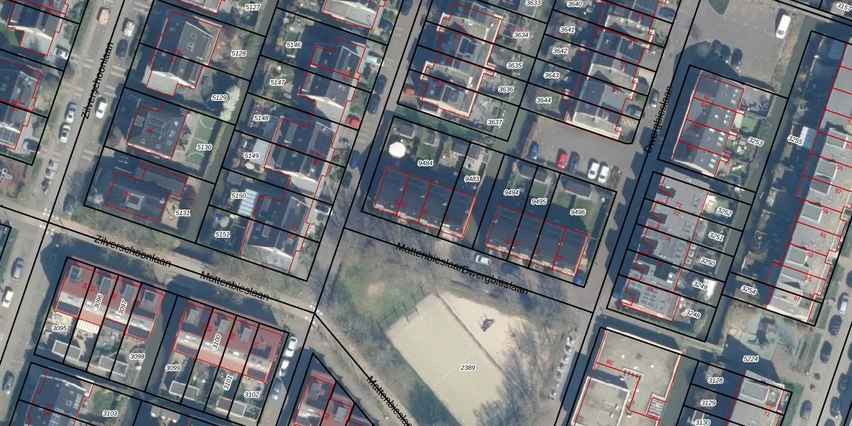 Het perceel waarop Mattenbieslaan 72 staat heeft een oppervlakte van 446 m². Dit is een groot perceel. De perceeloppervlakte wordt geregistreerd door het Kadaster. Gedetailleerde informatie over de maten van dit perceel kunt u vinden in het rapport Kadastrale kaart met maatvoering van Mattenbieslaan 72.