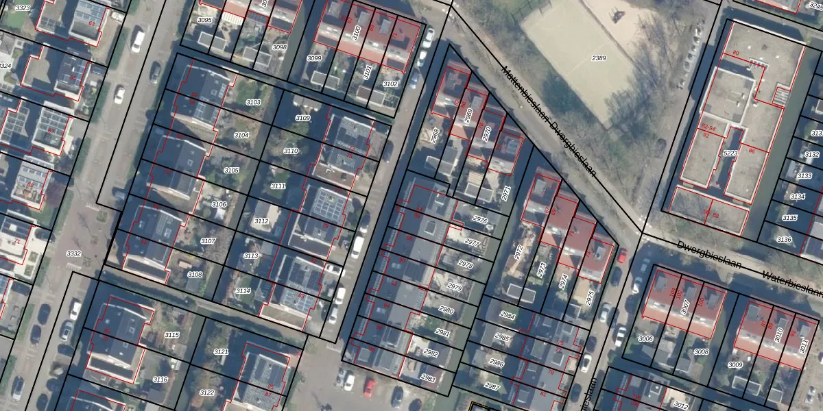 Gebruik de zoekbalk of klik op een perceel voor informatie over de adressen binnen dit perceel.