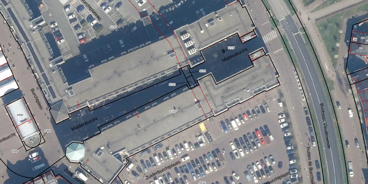 Het perceel waarop Middenburcht 49 staat heeft een oppervlakte van 2453 m². Dit is een zeer groot perceel. De perceeloppervlakte wordt geregistreerd door het Kadaster. Gedetailleerde informatie over de maten van dit perceel kunt u vinden in het rapport Kadastrale kaart met maatvoering van Middenburcht 49.