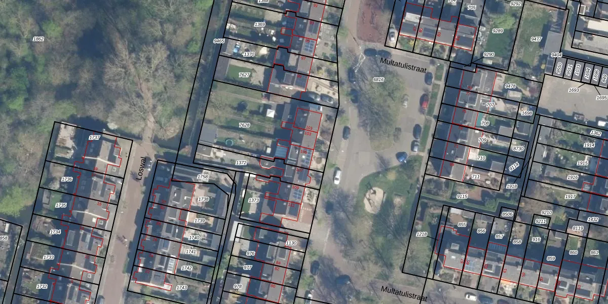 Het perceel waarop Multatulistraat 105 staat heeft een oppervlakte van 909 m². Dit is een groot perceel. De perceeloppervlakte wordt geregistreerd door het Kadaster. Gedetailleerde informatie over de maten van dit perceel kunt u vinden in het rapport Kadastrale kaart met maatvoering van Multatulistraat 105.