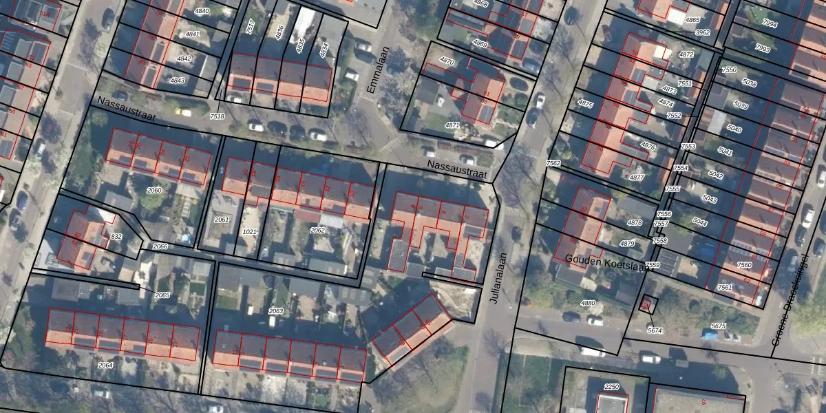 Het perceel waarop Nassaustraat 8 staat heeft een oppervlakte van 2360 m². Dit is een zeer groot perceel. De perceeloppervlakte wordt geregistreerd door het Kadaster. Gedetailleerde informatie over de maten van dit perceel kunt u vinden in het rapport Kadastrale kaart met maatvoering van Nassaustraat 8.