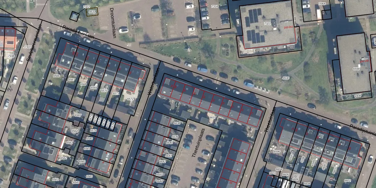 Het perceel waarop Paradijstuinlaan 87 staat heeft een oppervlakte van 1856 m². Dit is een zeer groot perceel. De perceeloppervlakte wordt geregistreerd door het Kadaster. Gedetailleerde informatie over de maten van dit perceel kunt u vinden in het rapport Kadastrale kaart met maatvoering van Paradijstuinlaan 87.