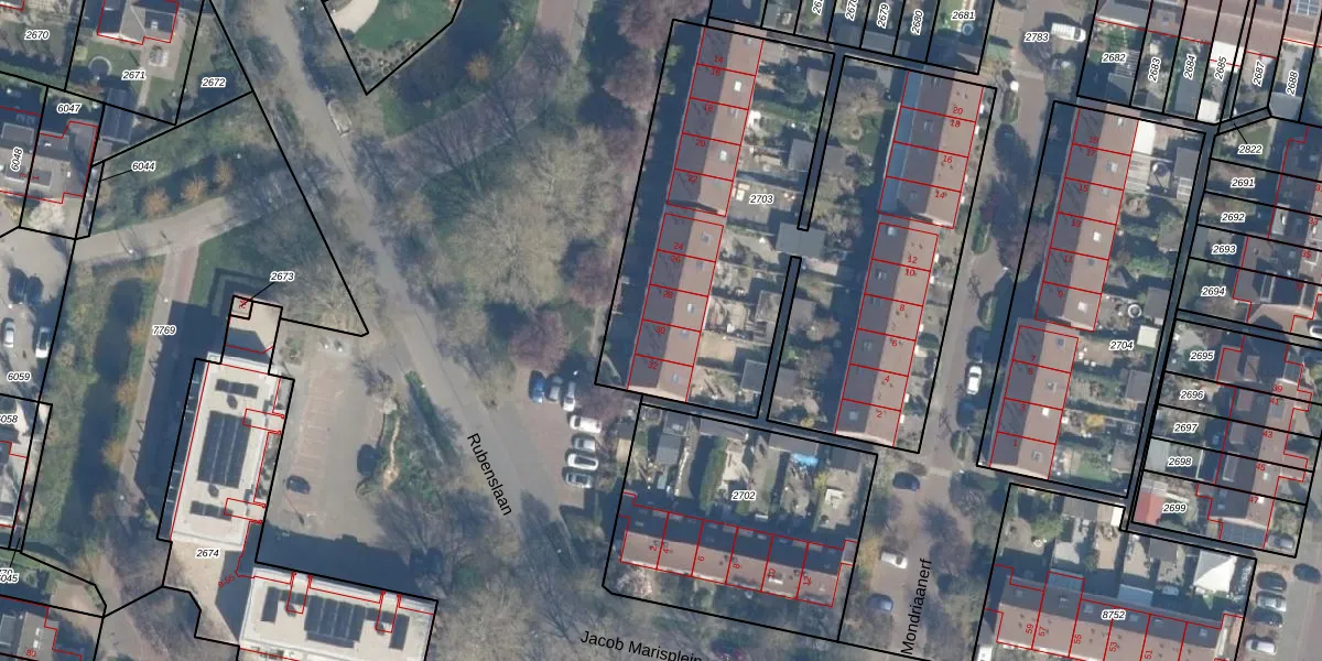 Het perceel waarop Rubenslaan 30 staat heeft een oppervlakte van 2742 m². Dit is een zeer groot perceel. De perceeloppervlakte wordt geregistreerd door het Kadaster. Gedetailleerde informatie over de maten van dit perceel kunt u vinden in het rapport Kadastrale kaart met maatvoering van Rubenslaan 30.