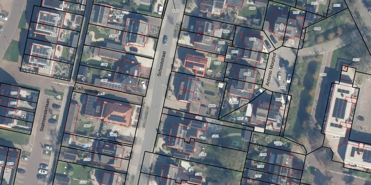 Het perceel waarop Schoolstraat 93 staat heeft een oppervlakte van 617 m². Dit is een groot perceel. De perceeloppervlakte wordt geregistreerd door het Kadaster. Gedetailleerde informatie over de maten van dit perceel kunt u vinden in het rapport Kadastrale kaart met maatvoering van Schoolstraat 93.