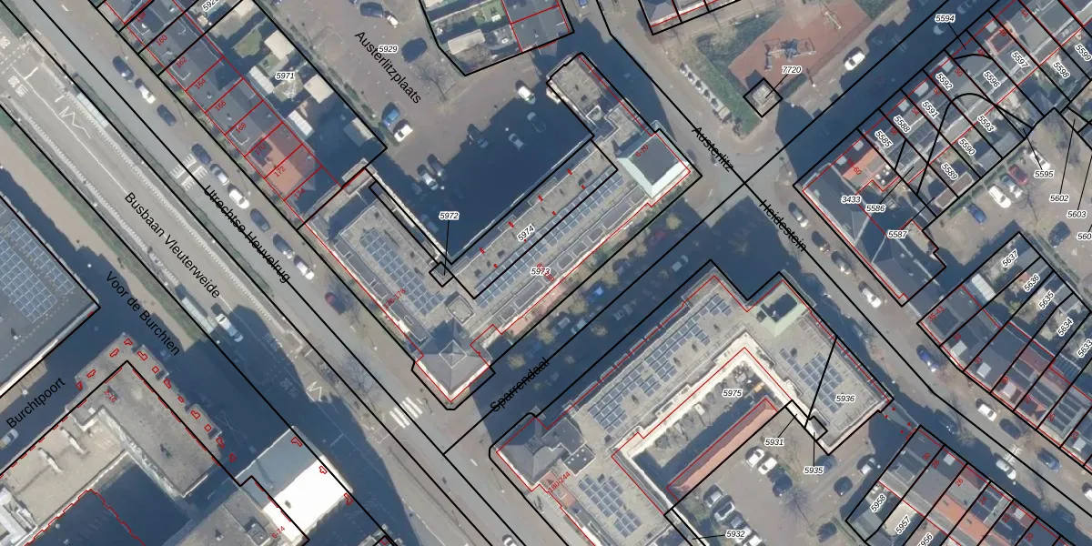 Het adres is gelegen op perceel 5973 in de sectie E en de kadastrale gemeente Vleuten. De kadastrale aanduiding is aldus VTN00-E-5973. De gemiddelde perceelgrootte in Vleuten is 1408,24 m². Dit perceel is kleiner: de perceeloppervlakte bedraagt 1379 m². Het grootste perceel in de kadastrale gemeente is 55,6 ha. Het kleinste perceel heeft een oppervlakte van 0 m². Op het perceel zijn 53 adressen aanwezig. In de Basisregistratie Kadaster (BRK) werden de grenzen van het perceel geregistreerd op 04-03-2010.
