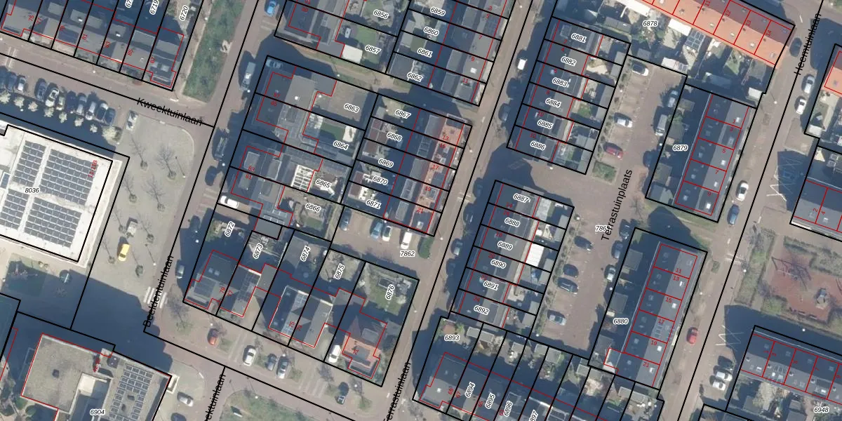 Gebruik de zoekbalk of klik op een perceel voor informatie over de adressen binnen dit perceel.