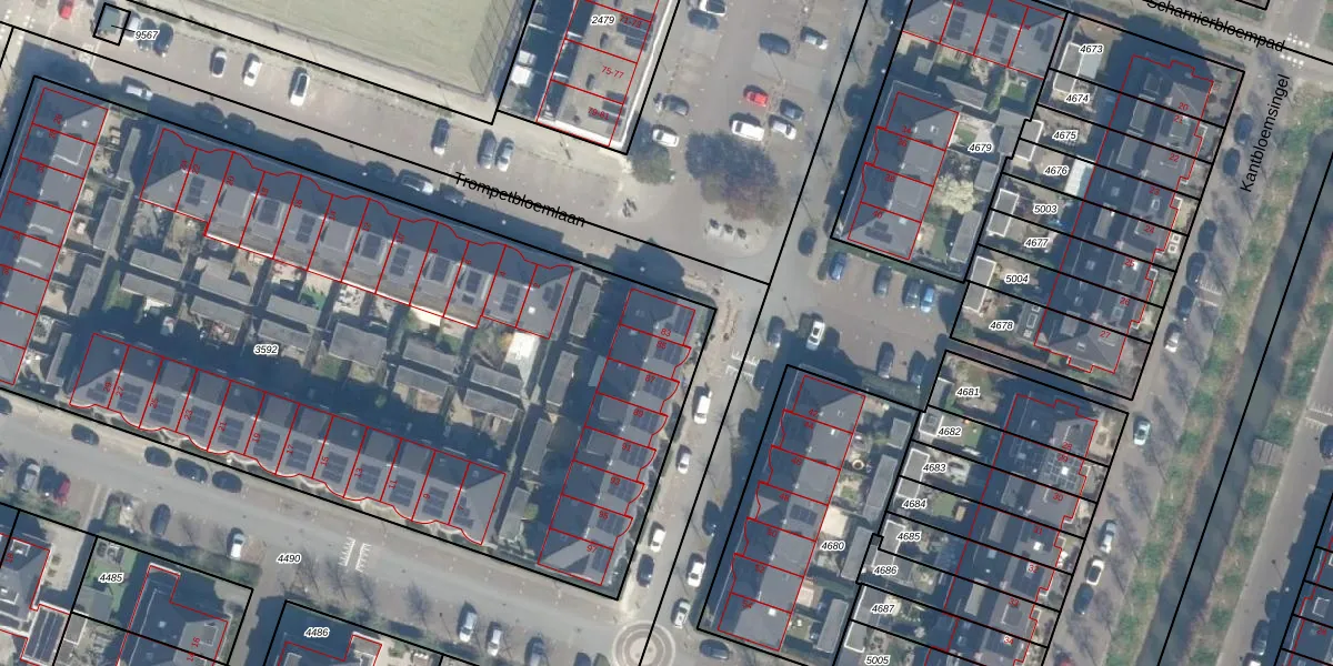 Het perceel waarop Veldbloemlaan 83 staat heeft een oppervlakte van 4979 m². Dit is een zeer groot perceel. De perceeloppervlakte wordt geregistreerd door het Kadaster. Gedetailleerde informatie over de maten van dit perceel kunt u vinden in het rapport Kadastrale kaart met maatvoering van Veldbloemlaan 83.