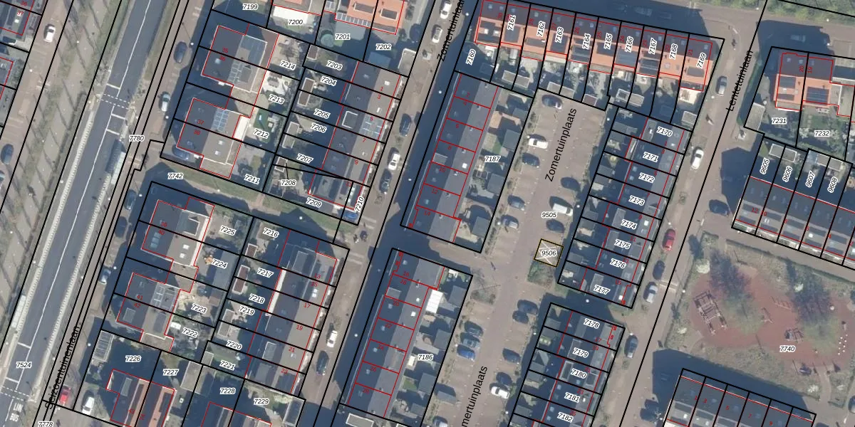 Het perceel waarop Zomertuinlaan 14 staat heeft een oppervlakte van 758 m². Dit is een groot perceel. De perceeloppervlakte wordt geregistreerd door het Kadaster. Gedetailleerde informatie over de maten van dit perceel kunt u vinden in het rapport Kadastrale kaart met maatvoering van Zomertuinlaan 14.