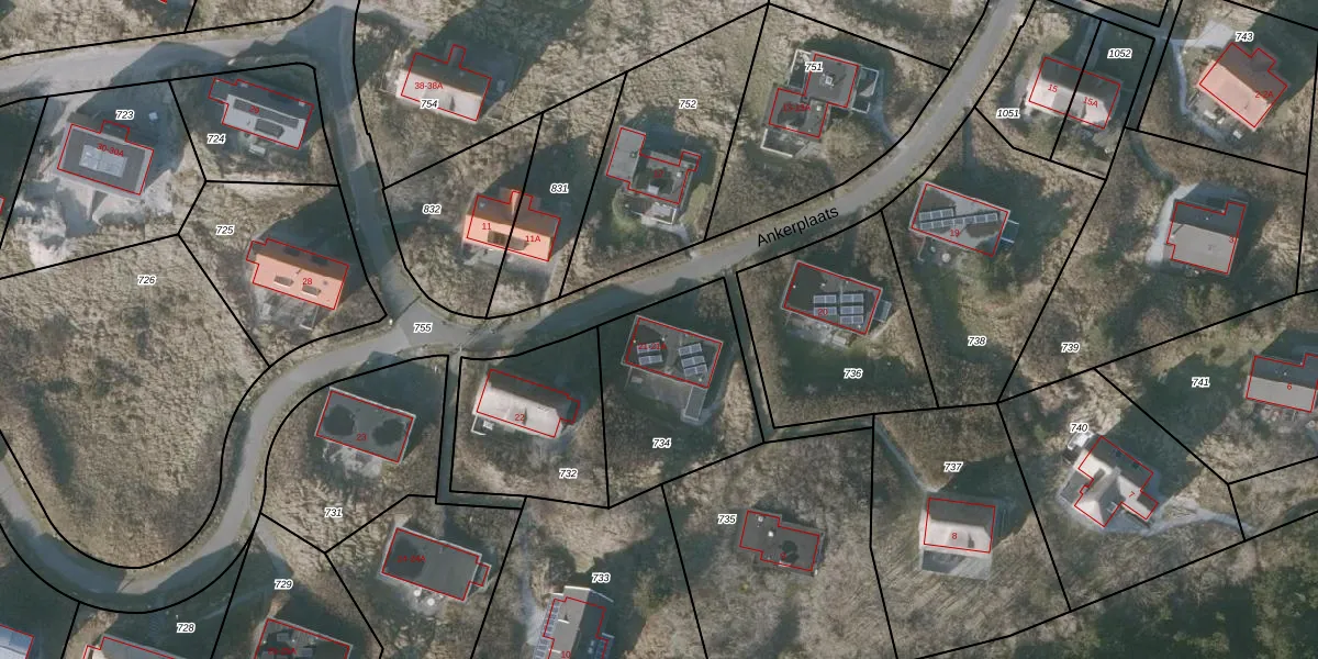 Het perceel waarop Ankerplaats 21 staat heeft een oppervlakte van 594 m². Dit is een groot perceel. De perceeloppervlakte wordt geregistreerd door het Kadaster. Gedetailleerde informatie over de maten van dit perceel kunt u vinden in het rapport Kadastrale kaart met maatvoering van Ankerplaats 21.
