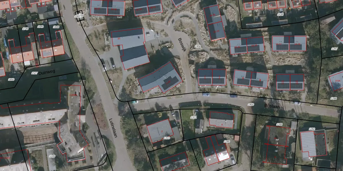 Boslaan 1-B is gelegen op kadastraal perceel VLD01A1958. Deze kadastrale aanduiding is uniek en wordt gebruikt door het Kadaster om eigendomsrechten en andere zakelijke rechten vast te leggen. Het perceel maakt onderdeel uit van de kadastrale gemeente Vlieland.