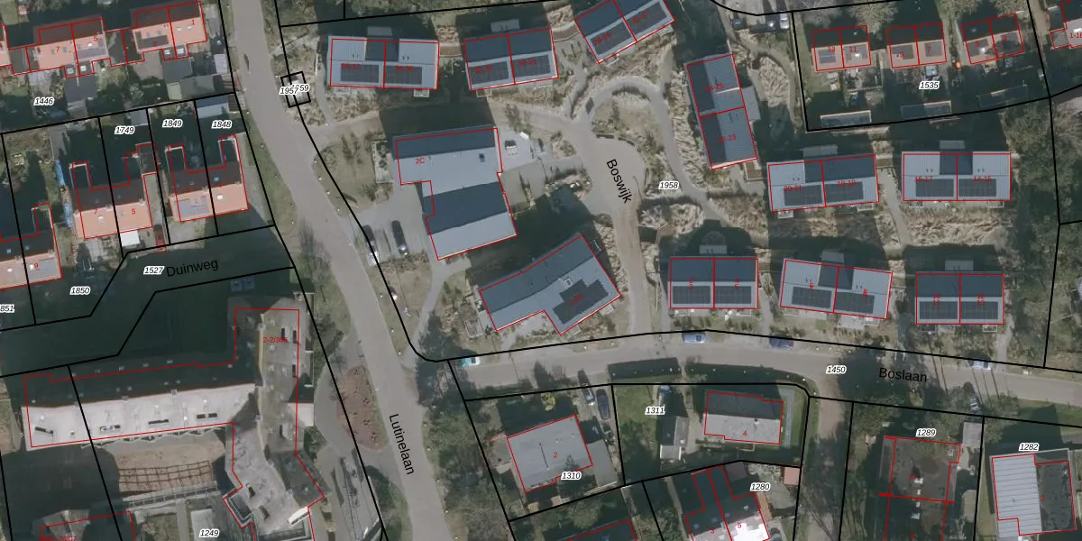 Het perceel waarop Boslaan 1-H staat heeft een oppervlakte van 7341 m². Dit is een zeer groot perceel. De perceeloppervlakte wordt geregistreerd door het Kadaster. Gedetailleerde informatie over de maten van dit perceel kunt u vinden in het rapport Kadastrale kaart met maatvoering van Boslaan 1-H.