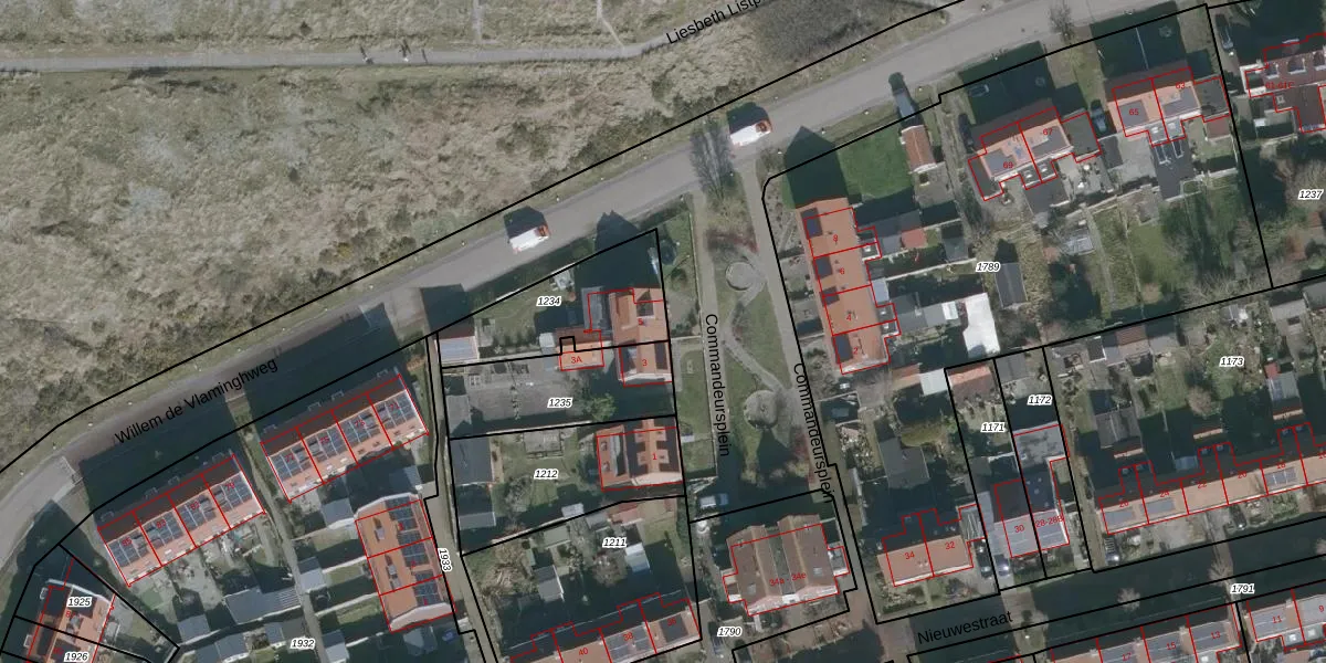 Commandeursplein 5 is gelegen op kadastraal perceel VLD01A1234. Deze kadastrale aanduiding is uniek en wordt gebruikt door het Kadaster om eigendomsrechten en andere zakelijke rechten vast te leggen. Het perceel maakt onderdeel uit van de kadastrale gemeente Vlieland.