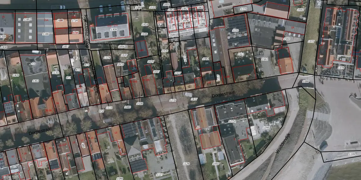 Dorpsstraat 14 is gelegen op kadastraal perceel VLD01A1977. Deze kadastrale aanduiding is uniek en wordt gebruikt door het Kadaster om eigendomsrechten en andere zakelijke rechten vast te leggen. Het perceel maakt onderdeel uit van de kadastrale gemeente Vlieland.