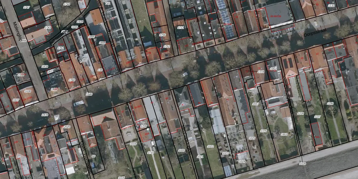 Het perceel waarop Dorpsstraat 87 staat heeft een oppervlakte van 430 m². Dit is een groot perceel. De perceeloppervlakte wordt geregistreerd door het Kadaster. Gedetailleerde informatie over de maten van dit perceel kunt u vinden in het rapport Kadastrale kaart met maatvoering van Dorpsstraat 87.