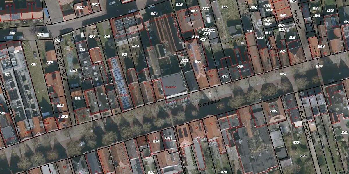 Het perceel waarop Dorpsstraat 88-033 staat heeft een oppervlakte van 1120 m². Dit is een zeer groot perceel. De perceeloppervlakte wordt geregistreerd door het Kadaster. Gedetailleerde informatie over de maten van dit perceel kunt u vinden in het rapport Kadastrale kaart met maatvoering van Dorpsstraat 88-033.
