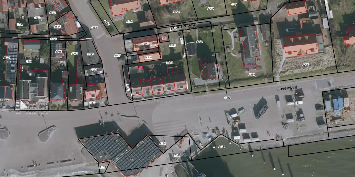 Het perceel waarop Havenweg 14 staat heeft een oppervlakte van 915 m². Dit is een groot perceel. De perceeloppervlakte wordt geregistreerd door het Kadaster. Gedetailleerde informatie over de maten van dit perceel kunt u vinden in het rapport Kadastrale kaart met maatvoering van Havenweg 14.