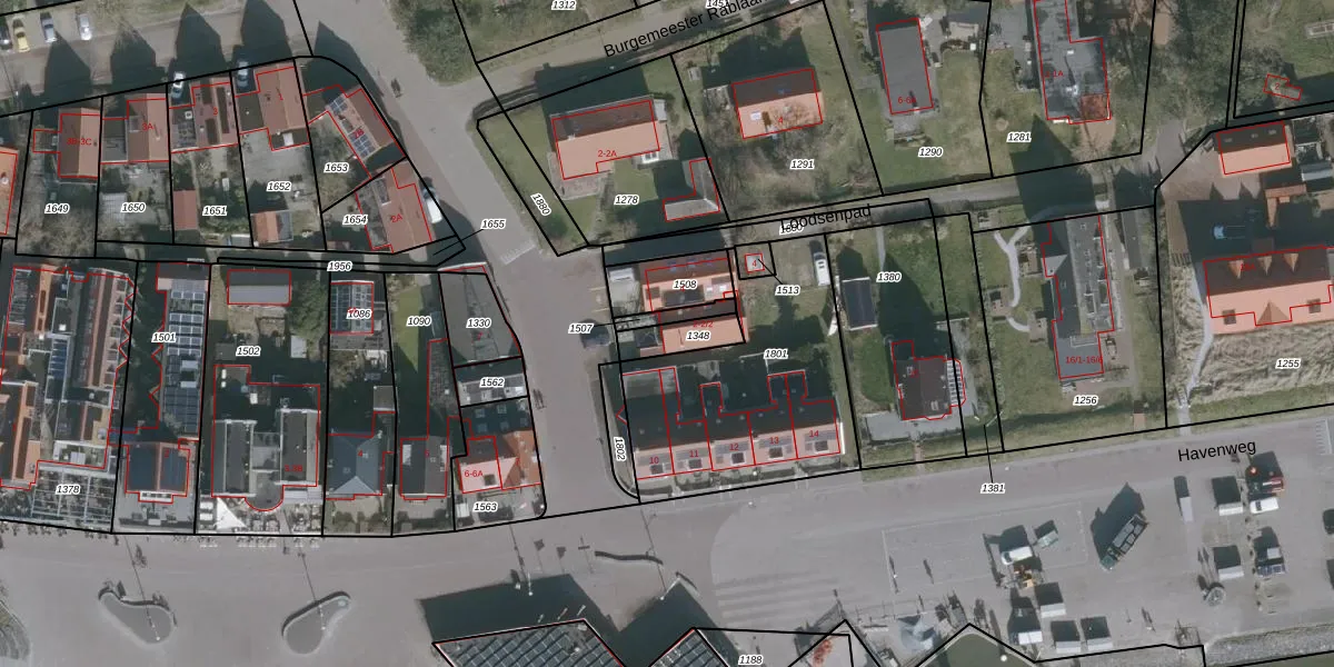 Het adres is gelegen op perceel 1348 in de sectie A en de kadastrale gemeente Vlieland. De kadastrale aanduiding is aldus VLD01-A-1348. De gemiddelde perceelgrootte in Vlieland is 25,3 ha. Dit perceel is kleiner: de perceeloppervlakte bedraagt 83 m². Het grootste perceel in de kadastrale gemeente is 96,10 km². Het kleinste perceel heeft een oppervlakte van 0 m². Er zijn 3 adressen aanwezig op het perceel. De huidige grenzen van het perceel zijn digitaal in de Basisregistratie Kadaster (BRK) geregistreerd op 15-01-1998.