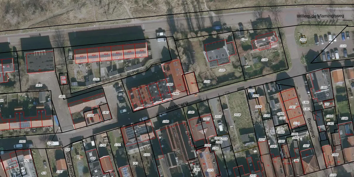 Middenweg 37-E is gelegen op kadastraal perceel VLD01A1489. Deze kadastrale aanduiding is uniek en wordt gebruikt door het Kadaster om eigendomsrechten en andere zakelijke rechten vast te leggen. Het perceel maakt onderdeel uit van de kadastrale gemeente Vlieland.