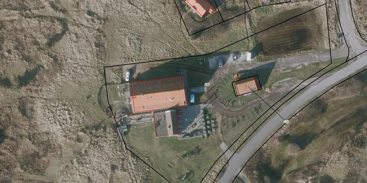 Het adres is gelegen op perceel 648 in de sectie B en de kadastrale gemeente Vlieland. De kadastrale aanduiding is aldus VLD01-B-648. De gemiddelde perceelgrootte in Vlieland is 25,5 ha. Dit perceel is kleiner: de perceeloppervlakte bedraagt 6075 m². De grootste perceeloppervlakte in de kadastrale gemeente is 96,10 km². De kleinste oppervlakte bedraagt 0 m². Op het perceel zijn 2 adressen aanwezig. In de Basisregistratie Kadaster (BRK) werden de grenzen van het perceel geregistreerd op 01-05-2006.