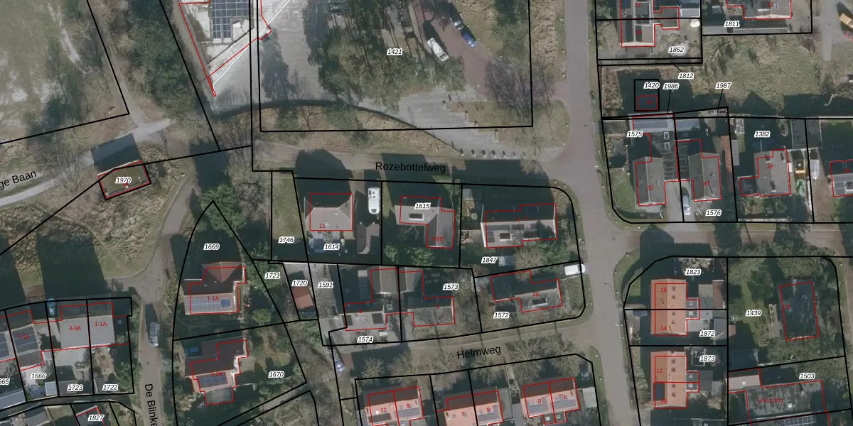 Rozebottelweg 9-B is gelegen op kadastraal perceel VLD01A1615. Deze kadastrale aanduiding is uniek en wordt gebruikt door het Kadaster om eigendomsrechten en andere zakelijke rechten vast te leggen. Het perceel maakt onderdeel uit van de kadastrale gemeente Vlieland.