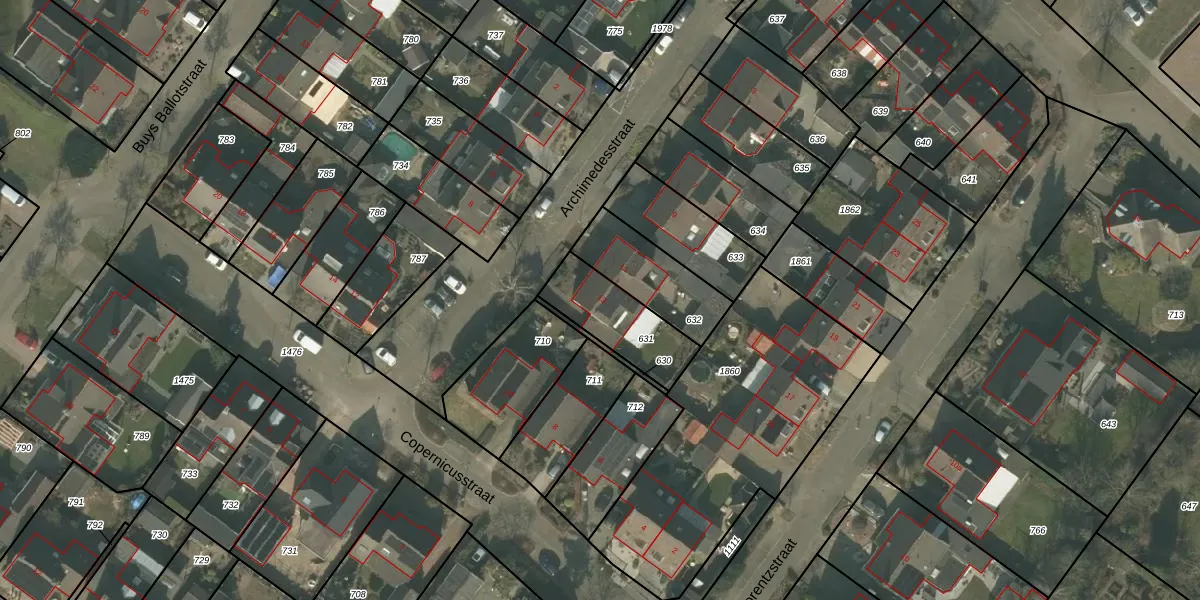 Het perceel waarop Archimedesstraat 13 staat heeft een oppervlakte van 249 m². Dit is een middelgroot perceel. De perceeloppervlakte wordt geregistreerd door het Kadaster. Gedetailleerde informatie over de maten van dit perceel kunt u vinden in het rapport Kadastrale kaart met maatvoering van Archimedesstraat 13.