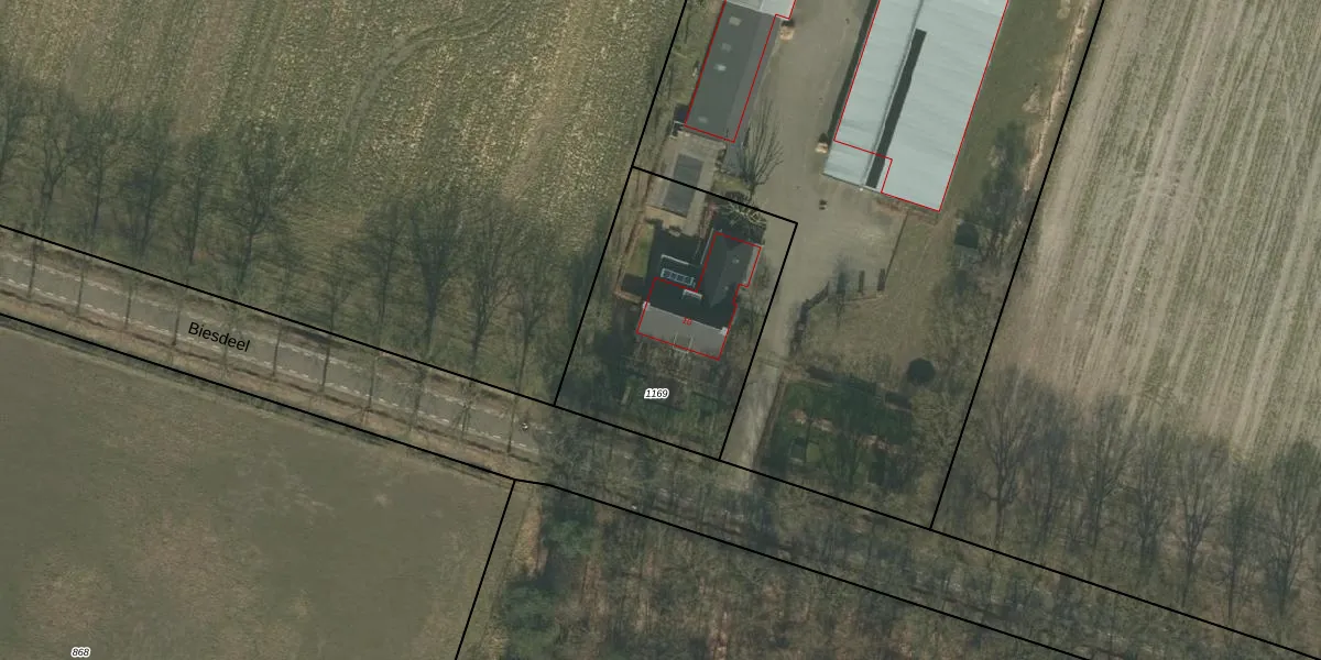 Het perceel waarop Biesdeel 10 staat heeft een oppervlakte van 1000 m². Dit is een zeer groot perceel. De perceeloppervlakte wordt geregistreerd door het Kadaster. Gedetailleerde informatie over de maten van dit perceel kunt u vinden in het rapport Kadastrale kaart met maatvoering van Biesdeel 10.