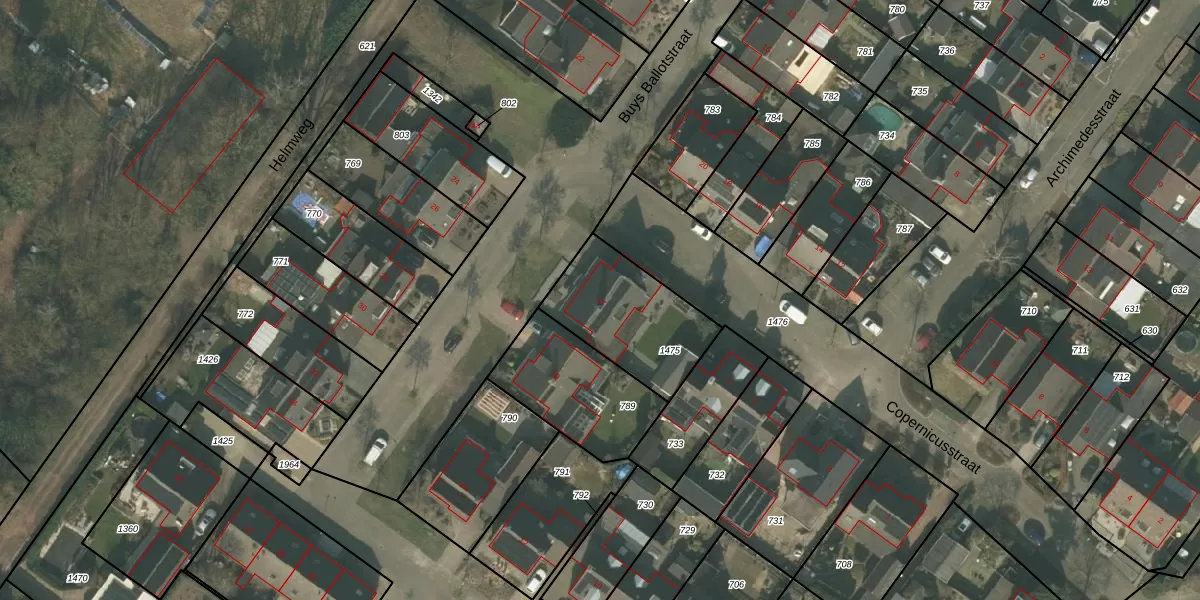 Het perceel waarop Buys Ballotstraat 17 staat heeft een oppervlakte van 413 m². Dit is een groot perceel. De perceeloppervlakte wordt geregistreerd door het Kadaster. Gedetailleerde informatie over de maten van dit perceel kunt u vinden in het rapport Kadastrale kaart met maatvoering van Buys Ballotstraat 17.