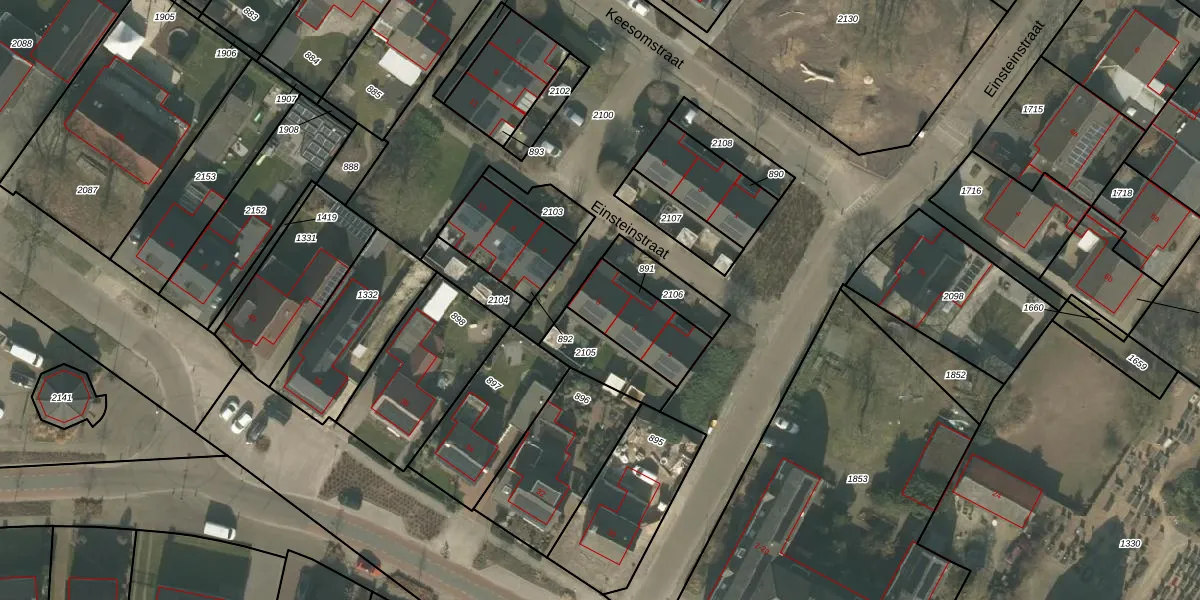 Het perceel waarop Einsteinstraat 5 staat heeft een oppervlakte van 227 m². Dit is een middelgroot perceel. De perceeloppervlakte wordt geregistreerd door het Kadaster. Gedetailleerde informatie over de maten van dit perceel kunt u vinden in het rapport Kadastrale kaart met maatvoering van Einsteinstraat 5.