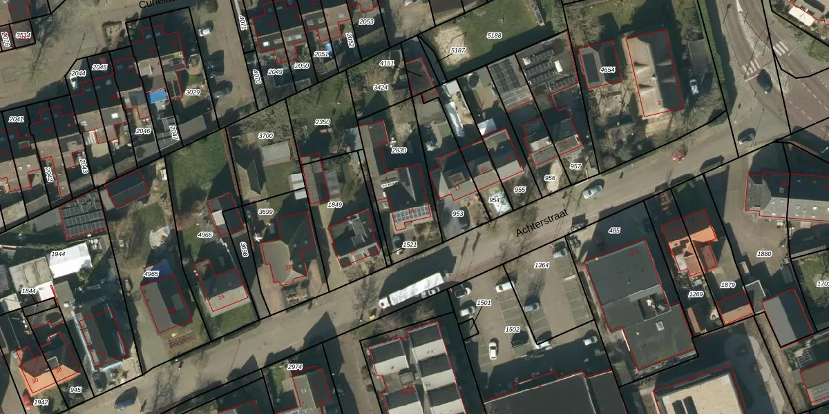 Het perceel waarop Achterstraat 14 staat heeft een oppervlakte van 493 m². Dit is een groot perceel. De perceeloppervlakte wordt geregistreerd door het Kadaster. Gedetailleerde informatie over de maten van dit perceel kunt u vinden in het rapport Kadastrale kaart met maatvoering van Achterstraat 14.