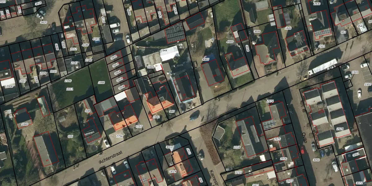 Het perceel waarop Achterstraat 26 staat heeft een oppervlakte van 971 m². Dit is een groot perceel. De perceeloppervlakte wordt geregistreerd door het Kadaster. Gedetailleerde informatie over de maten van dit perceel kunt u vinden in het rapport Kadastrale kaart met maatvoering van Achterstraat 26.