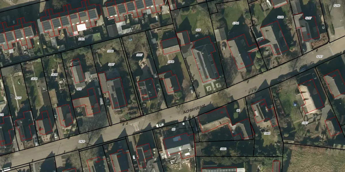 Het perceel waarop Achterstraat 54 staat heeft een oppervlakte van 790 m². Dit is een groot perceel. De perceeloppervlakte wordt geregistreerd door het Kadaster. Gedetailleerde informatie over de maten van dit perceel kunt u vinden in het rapport Kadastrale kaart met maatvoering van Achterstraat 54.