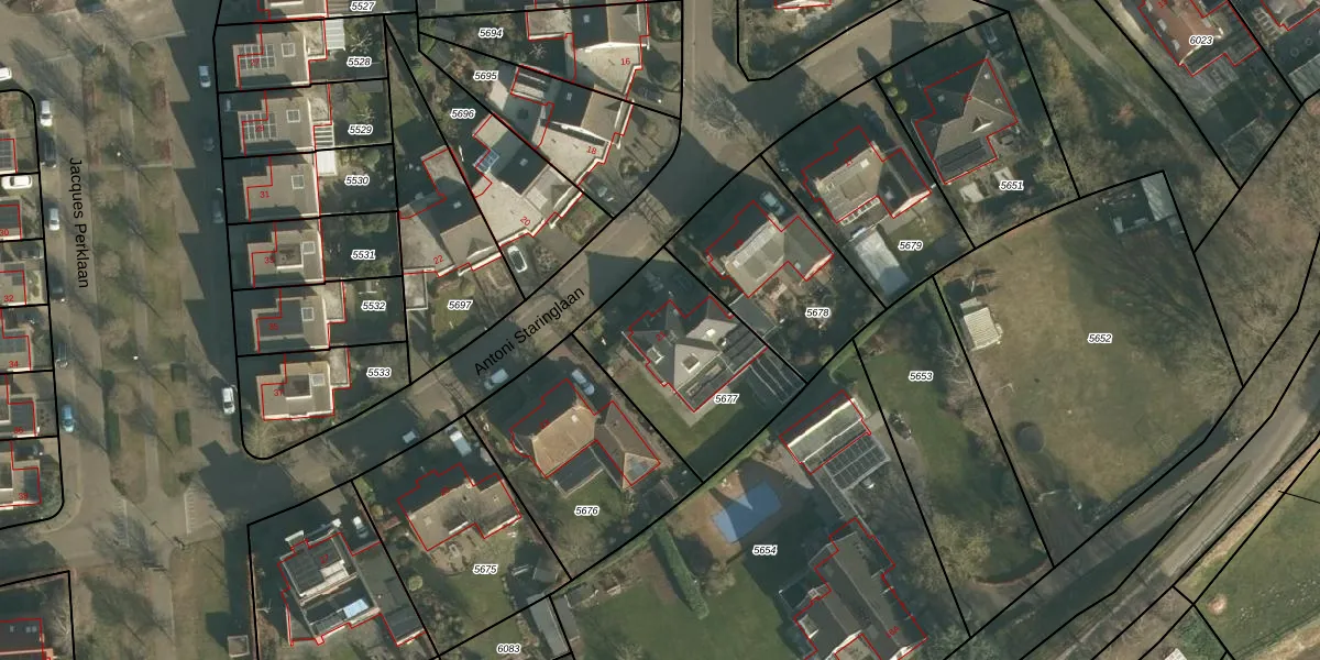 Gebruik de zoekbalk of klik op een perceel voor informatie over de adressen binnen dit perceel.